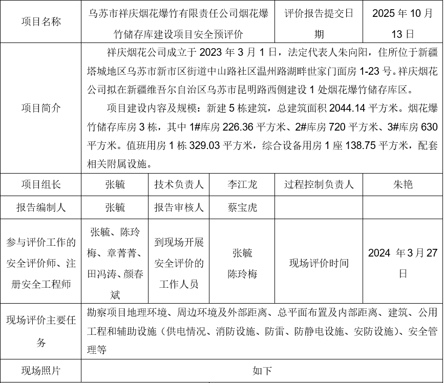 乌苏市祥庆烟花爆竹有限责任公司烟花爆竹储存库建设项目安全预评价