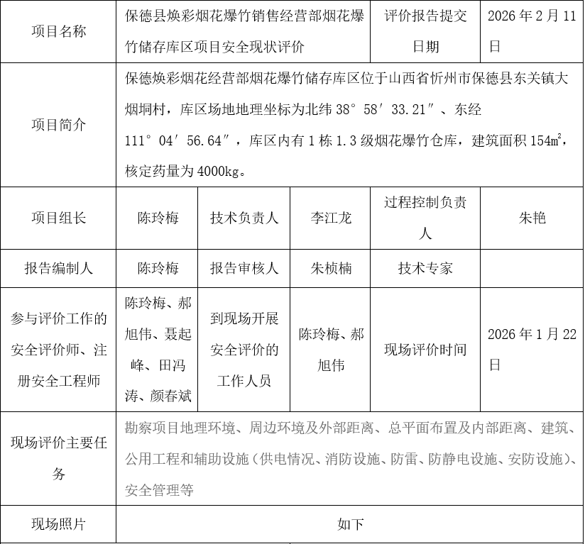 保德县焕彩烟花爆竹销售经营部烟花爆竹储存库区项目安全现状评价