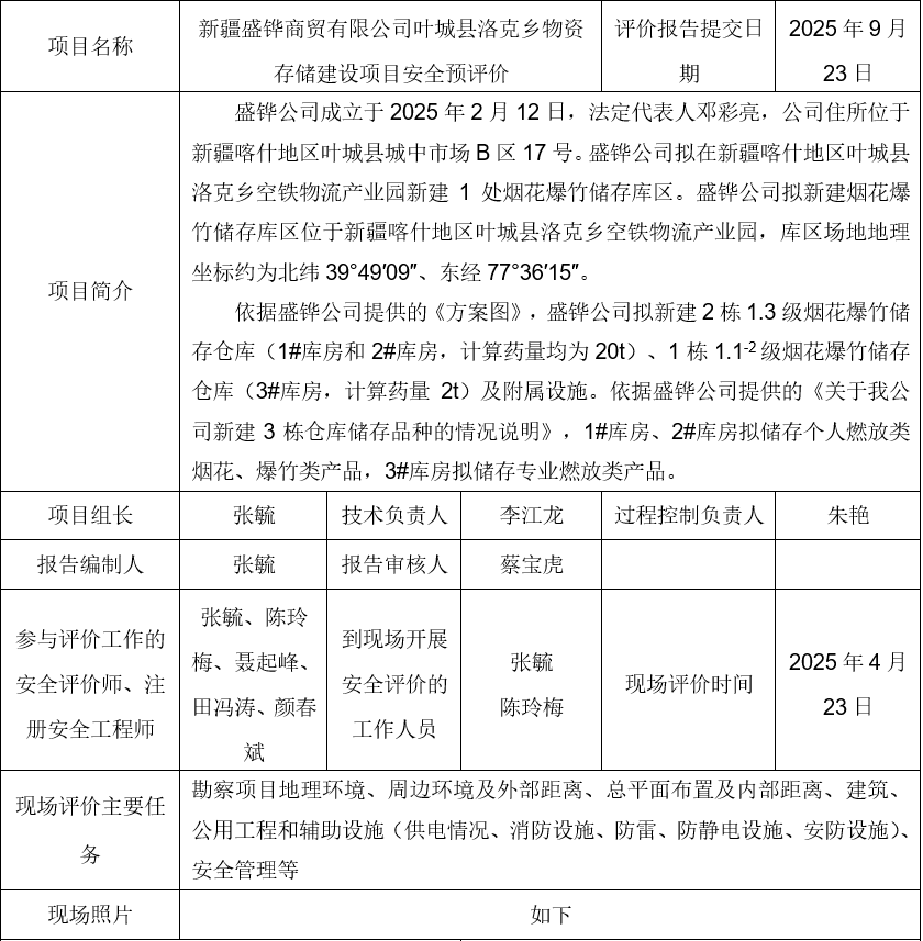 新疆盛铧商贸有限公司叶城县洛克乡物资存储建设项目安全预评价